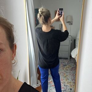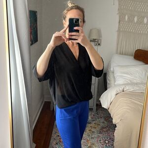 Wayf Blouson Black V-Neck Sheer Blouse Size Medium