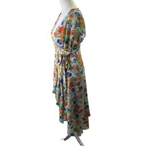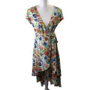 Wayf Floral Midi Wrap Dress Sz M Multicolor Floral High-low Medium Multi…