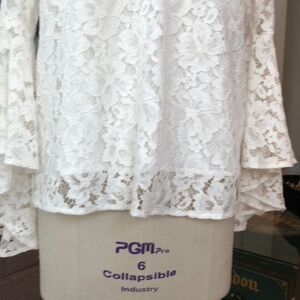 Victorian romance meets contemporary edge with this lace top ethereally detailed with a choker collar and flowing bell sleeves. This style fits true to size.