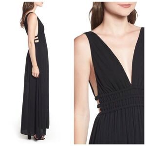 Side cutouts provide a flirty finish for a flowing and sophisticated maxi dress. This style fits true to size. S=4-6