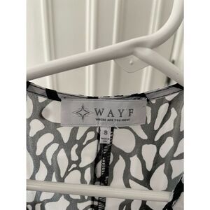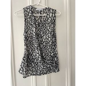 Wayf white with black animal print lightweight sheer tank size small, large opening in front, likely this is made to be worn over a another top, 100% polyester, sexy and cute, pit to pit 17 inches, shoulder to bottom 23 inches