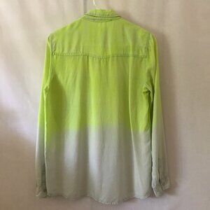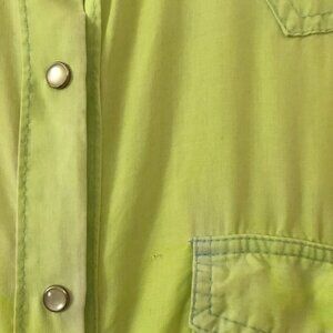 Wayne Neon Ombre Snap-Front Shirt. Fades from bright chartreuse to pale blue. Tiny snag to the left of one pocket.