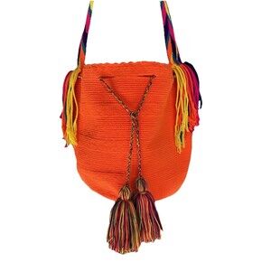 Wayuu Mochila Bag Large Size Orange Handmade from Colombia Crossbody Hobo Bag