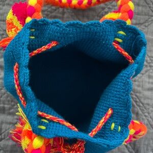 This bag was hand-crocheted by women of the Wayuu tribe in the La Guajira region of Colombia. This bag is unique, featuring intricate patters and vibrant colors that reflect the weaver's creative and cultural heritage. This bag has never been used and is in excellent condition.