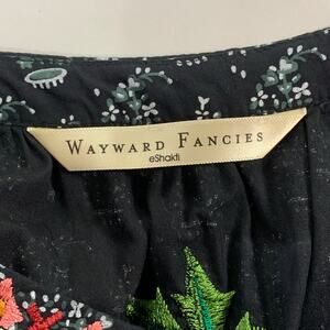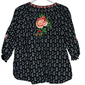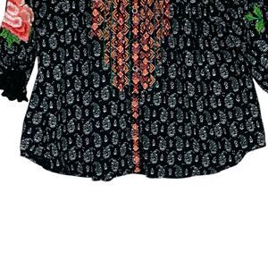 Wayward Fancies 1X Floral Embroidery Print Button Front Top Boho eShakti