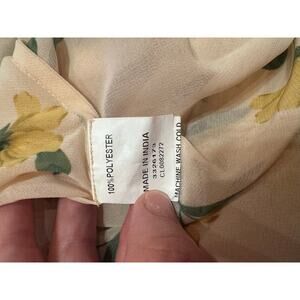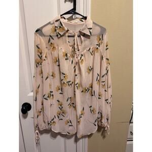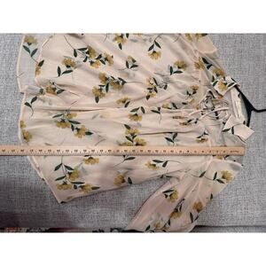 Wayward Fancies Butter Yellow Ribbon Tie Print Georgette Top Blouse Whimsical Sz L