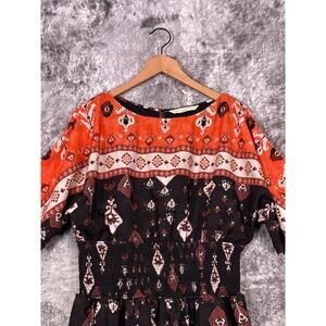 Wayward Fancies Dress XL Womens Orange Ikat Smocked Waist Side Slits Maxi