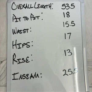 Very good used condition. Custom size but adjustable with waist tie. Measures like a medium. Measurements in pics.