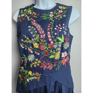 Wayward Fancies by eShakti navy Embroidered A Line dress sz 4 boho hippie office