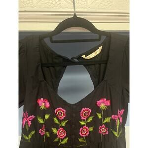 Wayward Fancies eShakti Black Maxi Dress Cottage Peasant Dark Fairy Whimsigoth Modest Embroidered Milkmaid Fit & Flare