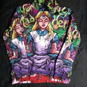 Waz Shop Alice In Wonderland AOP Hoodie Sweatshirt - Size Medium, Measures p2p=23" Length=28" Sleeve Length=28" - Excellent Condition, No Flaws