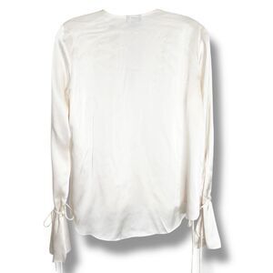 W by Worth 100% Silk Cream Faux Wrap V-Neck Blouse Bell Tie Sleeves Women’s 4