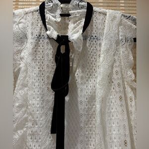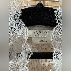W by Worth white Lace Sheer Victorian Tie Collar Camisole Layered Tank