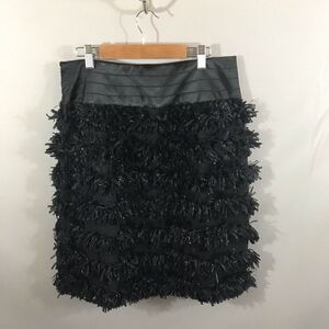 W by Worth black gold ribbon fringe skirt. Size 6. New with tags. Waist across 16, length 23. Lined. 45 percent cotton, 25 percent polyester, 19 nylon, 11 percent acrylic. Dry clean only. Thanks for looking. Happy Poshing!
