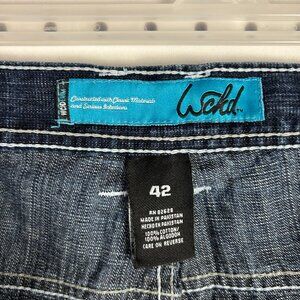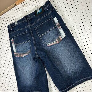 Wckd y2K Baggy Jean Shorts Size 42 Wide Leg Embroidered Blue Jorts 16" Inseam