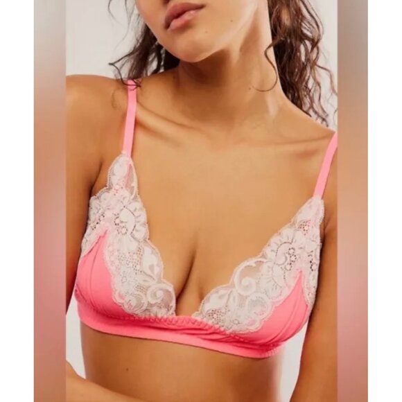 We Are HAH Bralette Free People On the Double Bubblegum Pink Lace NWT XS