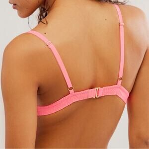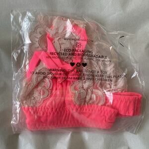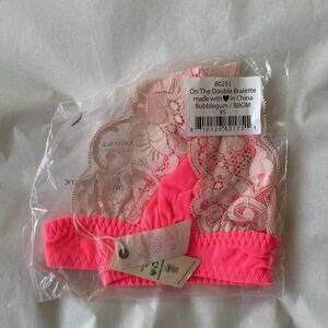Neon pink bralette with lace detail from We Are HAH. Comfy mesh, single hook closure. Color is much more neon than in the modeled photos. See photos for details. Size XS.
