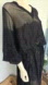 Beautiful sheer mesh with embroidered floral lace panels, flowy silhouette, and dramatic billowy sleeves. Washed, worn once, and ready to wear.