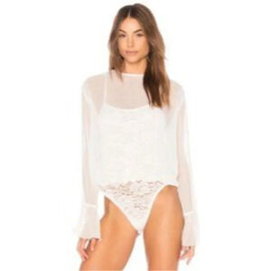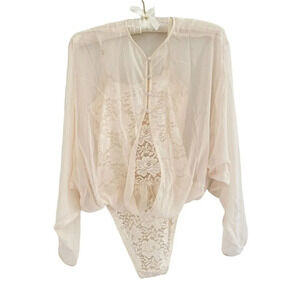 We Are Hah Mama Jen Lace Bodysuit Chiffon Top NWT Sz Small