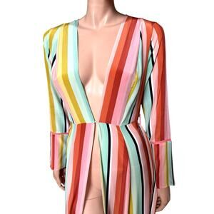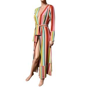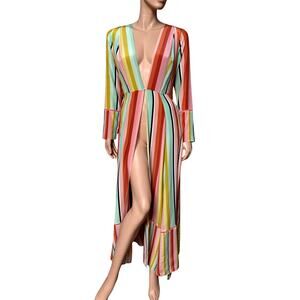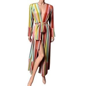 We Are Leone Contrast Maxi Cardigan 100% Silk Dress in Desert Stripe Size S/M