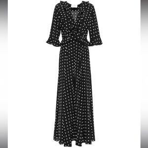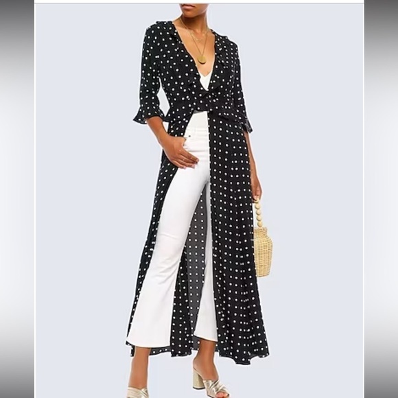 We Are Leone Ruby Ruffle Black Polka Dot 100% Silk Maxi Cardigan XS/S