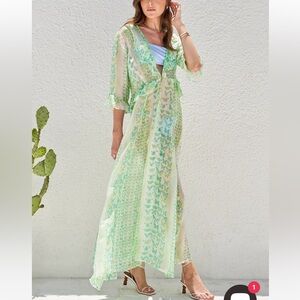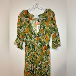 We Are Leone Ruby Ruffle Floral 100% Silk Maxi Cardigan Coverup Duster NWT