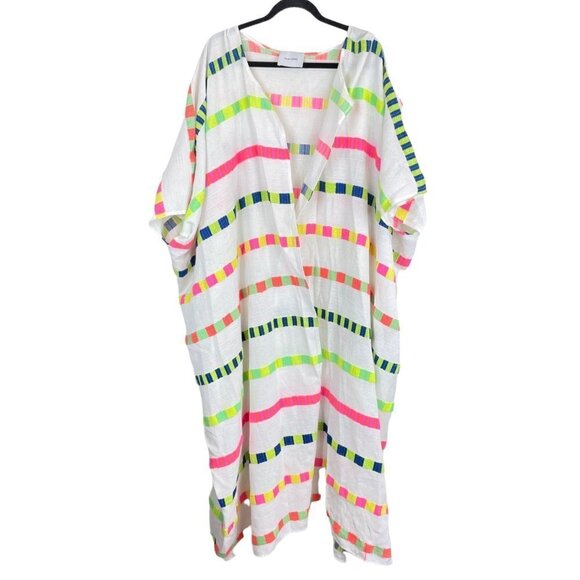 We Are Leone Striped Swim Bathing Suit Cover Up White Neon Multicolor One Size