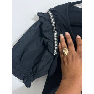 We Are Sundays Veda Black Dress With Pearl Accents Ruffle Puff Sleeves Medium