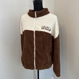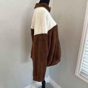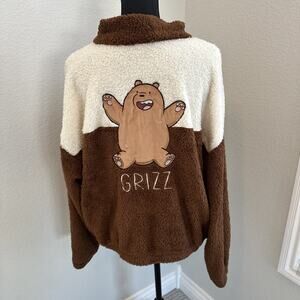 We Bare Bears X SHEIN Plus Size 1XL Letter Embroidery Two Tone Sweater Plush