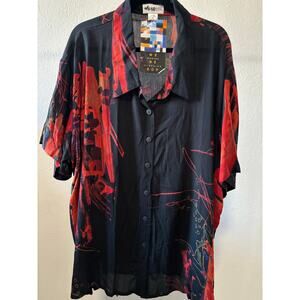 We Be Bop Oversized Shirt Blouse Plus Size 3X Black red Rayon Y2K New