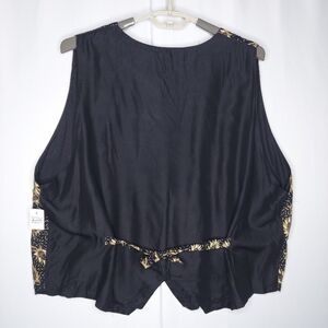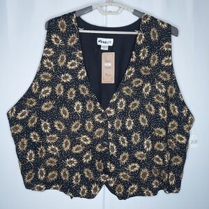 We Be Bop Vest Women Plus Size OS Black Beaded Sunflower V-Neck Button VTG