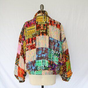 We Be Bop Vintage Patchwork Bomber puffer Jacket patchwork aztec asian ethnic
