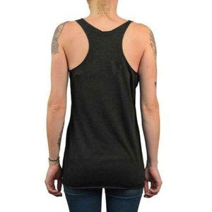 New with tags with info about the artist, black racerback tank top with unfinished edges. Custom rendition of Rosie the Riveter with tattoos by artist Adi.