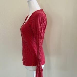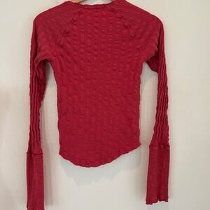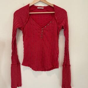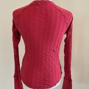We Free People Wild at Hart Henley Top Red SZS Fitted Shirt Ribbed Long Sleeve
