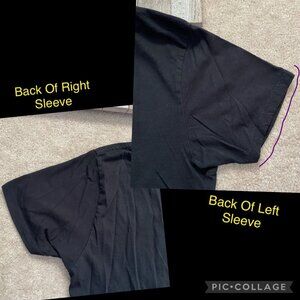 A bit of twisting / bunching up of material on end of short sleeves & bottom hem (see Pics #3, 8, 10-11).