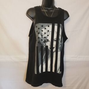This is a great black tank top from We Love Fine featuring the gorgeous Marilyn Monroe over a stylized American Flag.