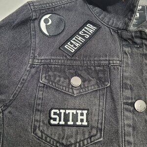 We Love Fine by Goldie Star Wars Patchwork Denim Jacket Black Sith Darkside Med.