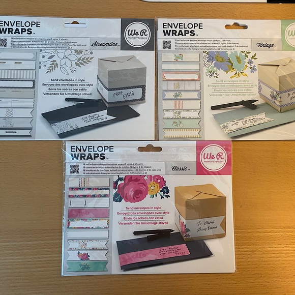 Envelope Wraps, 3 in new condition. Streamline, Vintage, and Classic.