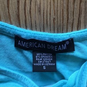 Custom made using a professional printing service. Top is in great used condition. It is soft and stretchy and really form fitted. Turquoise teal shade.