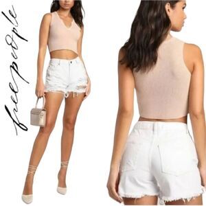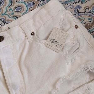 We The FREE PEOPLE White Maggie Distressed Jean Shorts Size 27 NWT