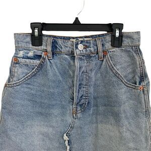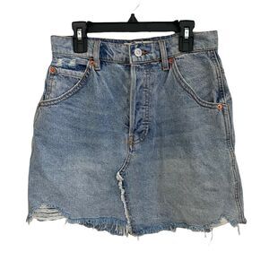 We The Free 26 Brea Cutoff Skirt Distressed Button Fly Blue Jean