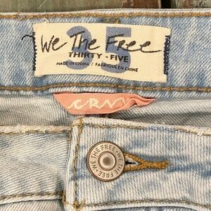 We The Free People Size 35 (US 18) Denim Jeans Shorts, High Rise, Stretch, Urban Outfitters, Style # OB1520429. Preowned. Gently worn. No stains or flaws.