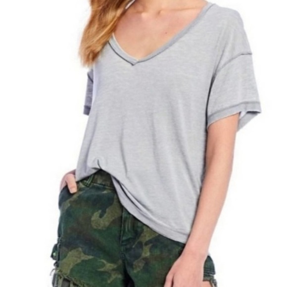 We The Free All Mine Tee Light Grey Oversized Boho Lightweight Short Sleeve