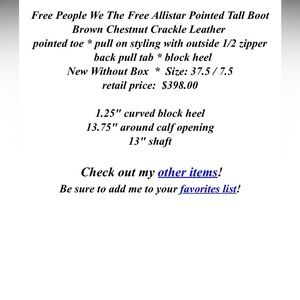 We The Free Allistar Pointed Boots Size 7.5 NWT