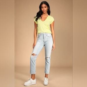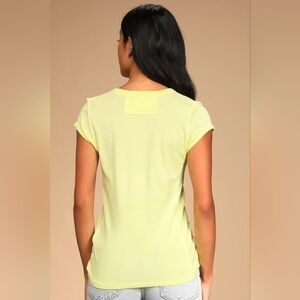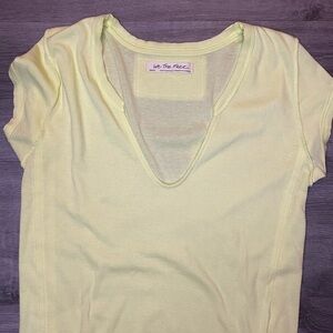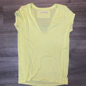 We The Free by Free People Always Yours Light Green Short Sleeve Tee. Size S. Notched V-neckline, short cap sleeves, and a relaxed-fit bodice. Exposed seaming throughout. 52% cotton, 48% polyester.