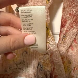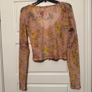 This stylish floral button-up top features a blend of pink and yellow hues, perfect for adding a touch of elegance to your wardrobe. The long sleeves and delicate pattern make it a versatile choice for any occasion.