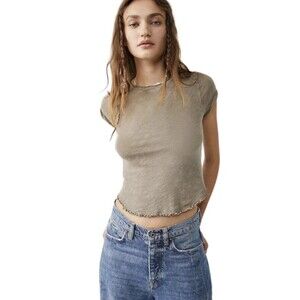 We The Free Be My Baby Cotton T-Shirt Olive Green Size Large Free People Boho