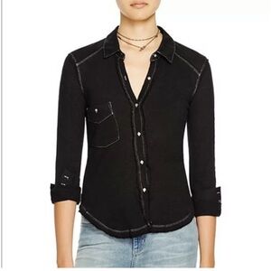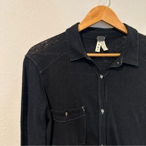 We The Free Black Caroline Contrast Stitch Button Down Shirt