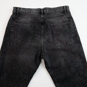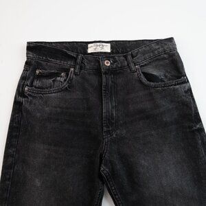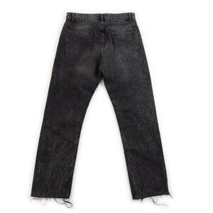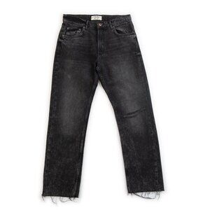 Stylish straight leg jeans. Distressed details. Frayed hem. Perfect for casual wear.