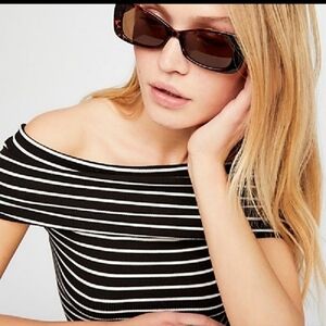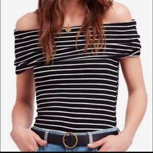 We The Free Black and White Striped Free People Off the Shoulder Top size medium